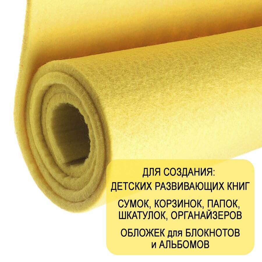 Отзывы на Фетр однотонный твердый 5 мм в рулоне 100 х 100 см, желтый C25, плотность 870 г/м2
