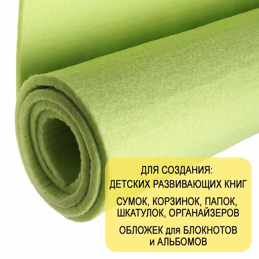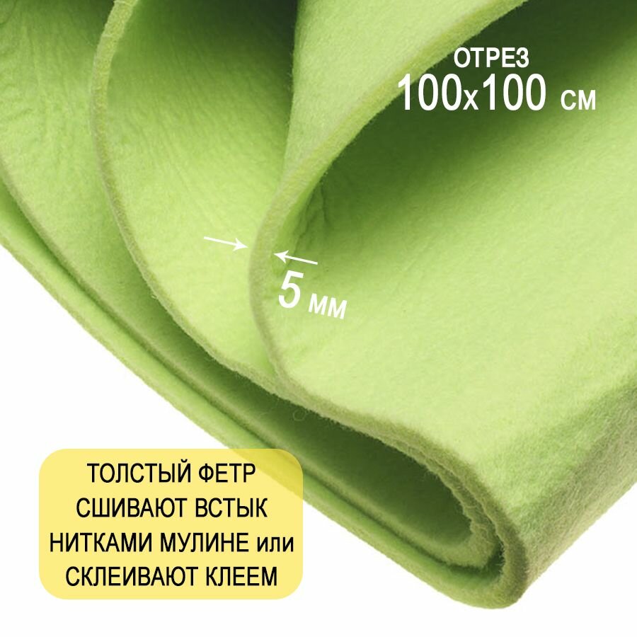 Отзывы на Фетр однотонный твердый 5 мм в рулоне 100 х 100 см, светло-салатовый C59, плотность 870 г/м2