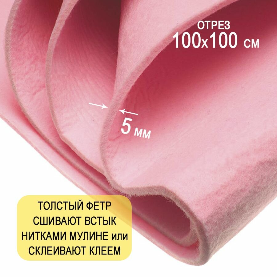 10 цен на Фетр однотонный твердый 5 мм в рулоне 100 х 100 см, розовый C30, плотность 870 г/м2