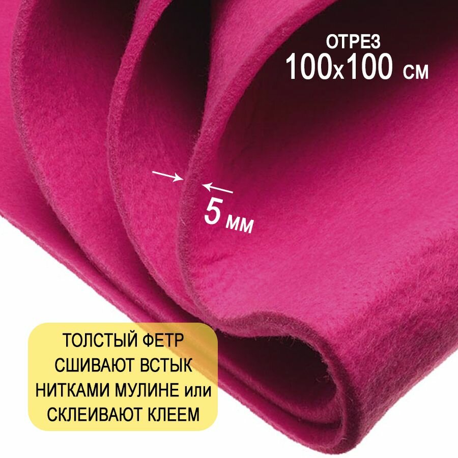 10 цен на Фетр однотонный твердый 5 мм в рулоне 100 х 100 см, ярко-розовый C21, плотность 870 г/м2