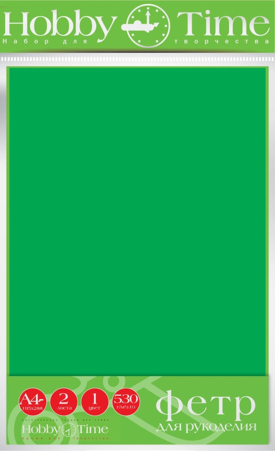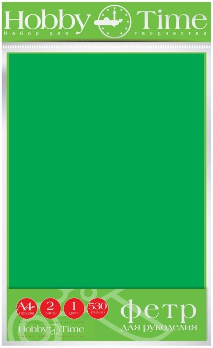 Фетр 4мм, 530 г/м. кв, ф. а4, 19.5х28.8см, 2 листа (зеЛеный),2-156/09 информация: