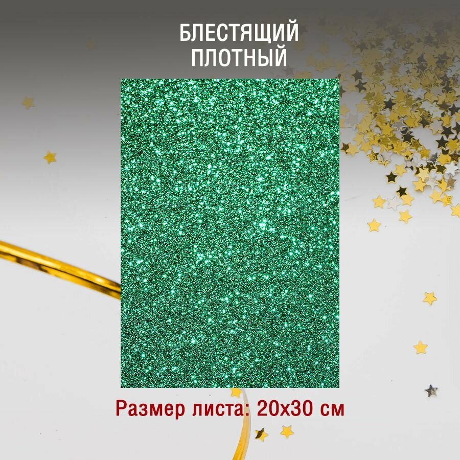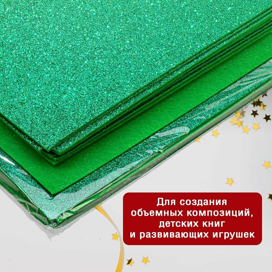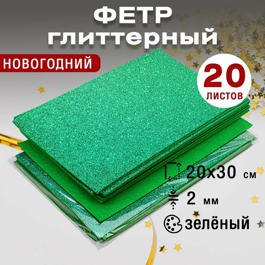 10 цен на Фетр однотонный жесткий глиттерный 2 мм / 200 х 300 мм (зеленый) - 20 листов