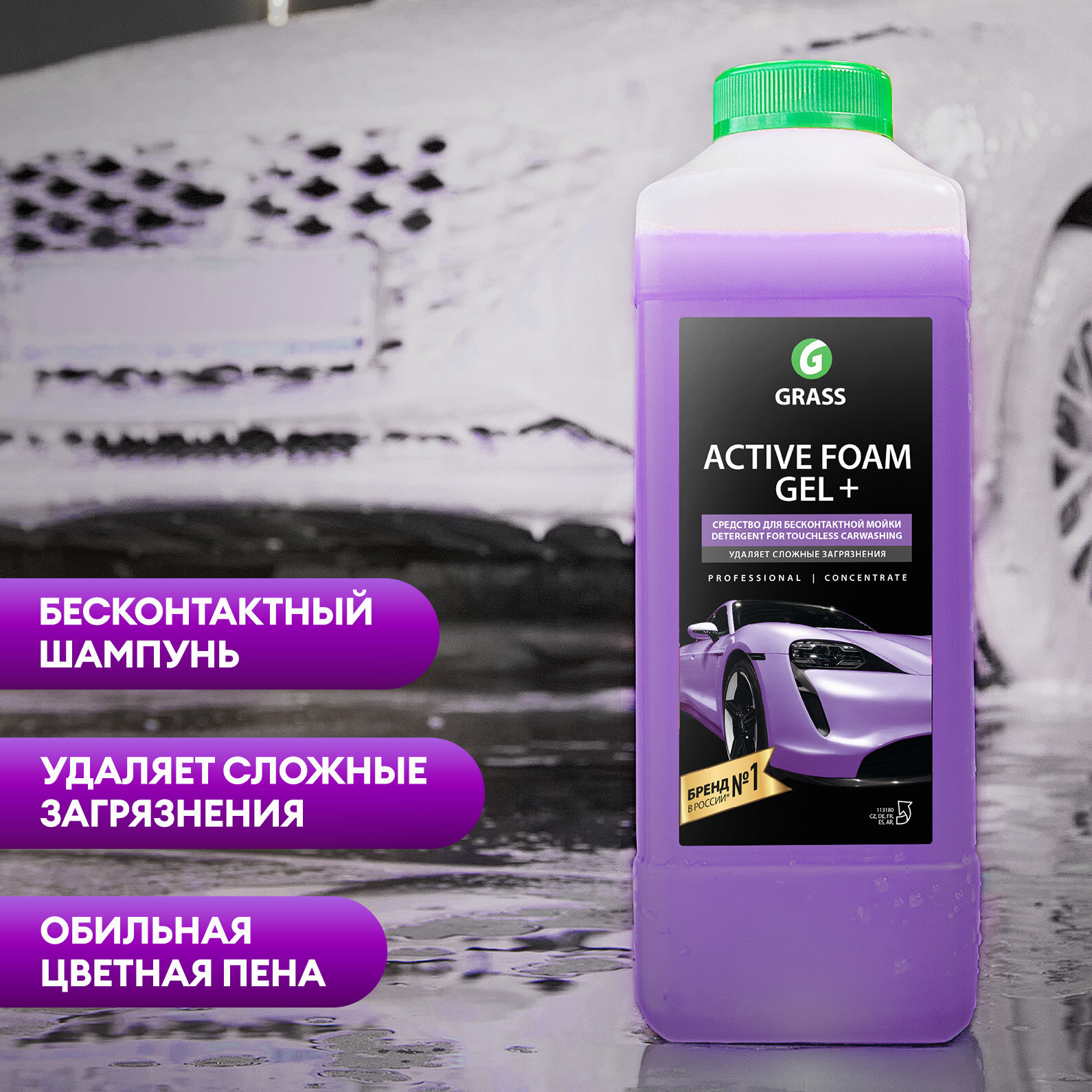Автошампунь active foam gel+ для бесконтактной мойки концентрат 1л grass 113180 1 490 ₽