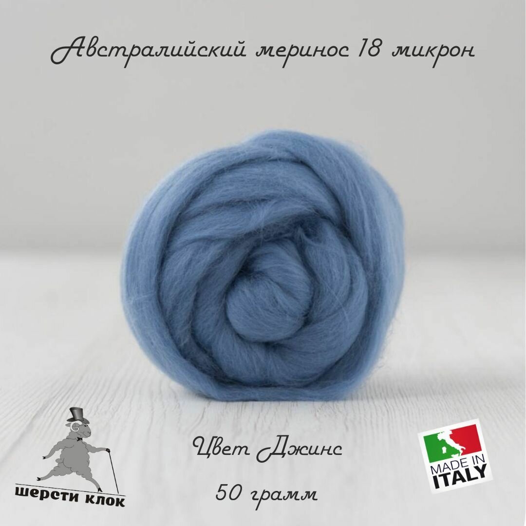 Шерсть для валяния австралийский меринос 18 мкр, Италия, цвет Джинс информация: