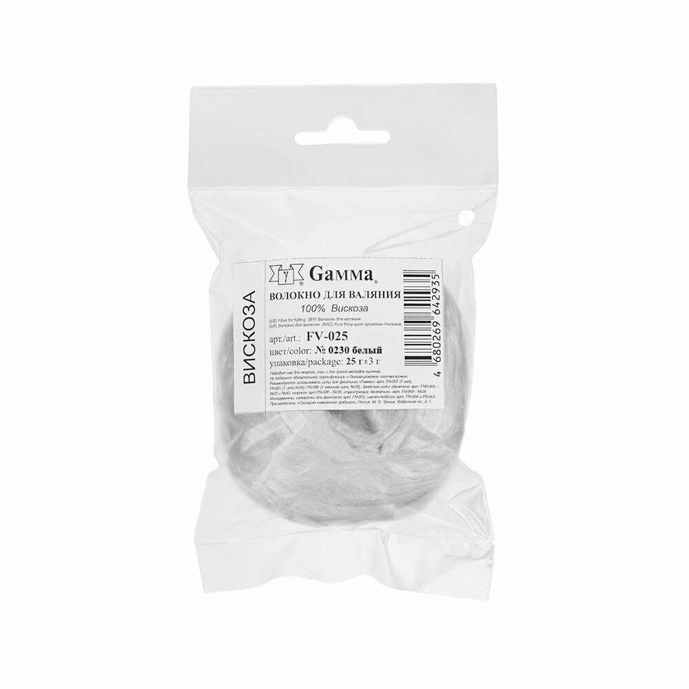 Волокно для валяния "Gamma" FV-025 100% вискоза 25 г № 0230 белый информация: