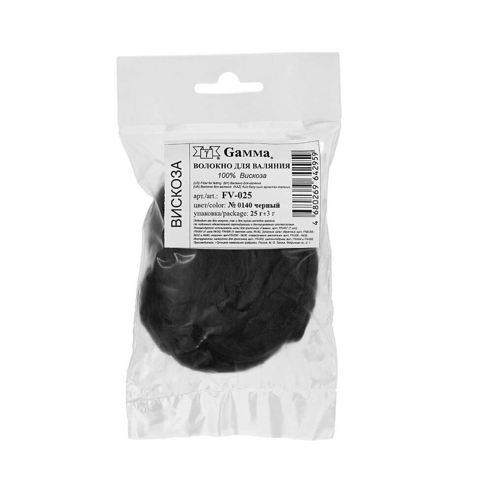 Волокно для валяния "Gamma" FV-025 100% вискоза 25 г № 0140 чёрный информация:
