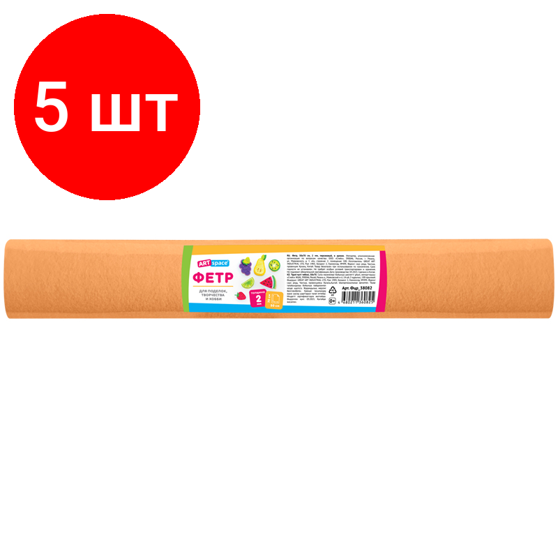 10 цен на Комплект 5 шт, Фетр ArtSpace 50*70см, 2мм, персиковый, в рулоне