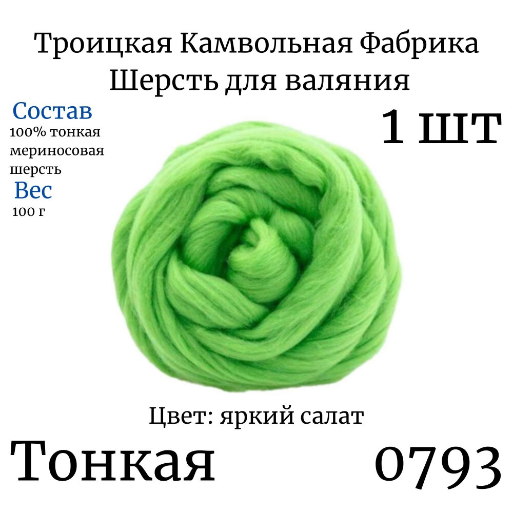 Отзывы на Пряжа для вязания ТКФ Тонкая шерсть для валяния 100 г 0793 яр. салат 100 гр/2 м 100% тонкая мериносовая шерсть