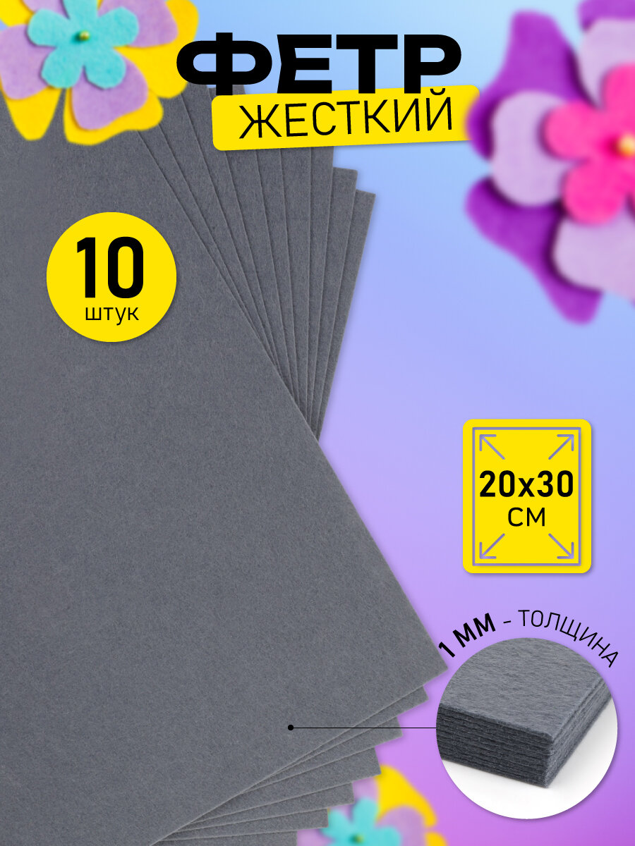 10 цен на Фетр листовой жесткий Magic 4 Hobby 1мм 20х30см арт. FLT-H1 уп.10 листов цв.696/104 св. серый