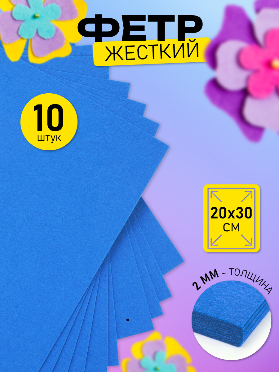 Отзывы на Фетр листовой жесткий Magic 4 Hobby 2мм 20х30см арт. FLT-H2 уп.10 листов цв.704/032 синий