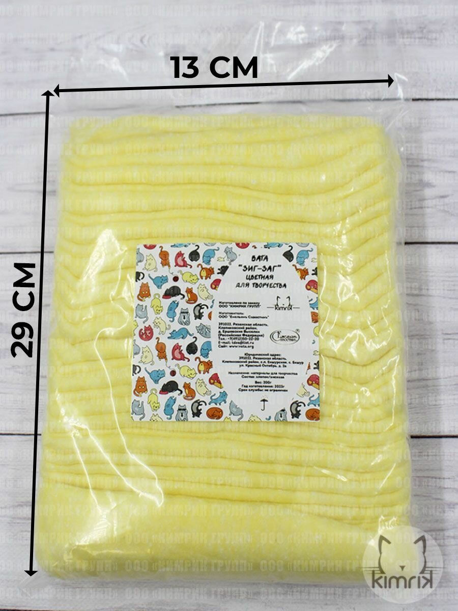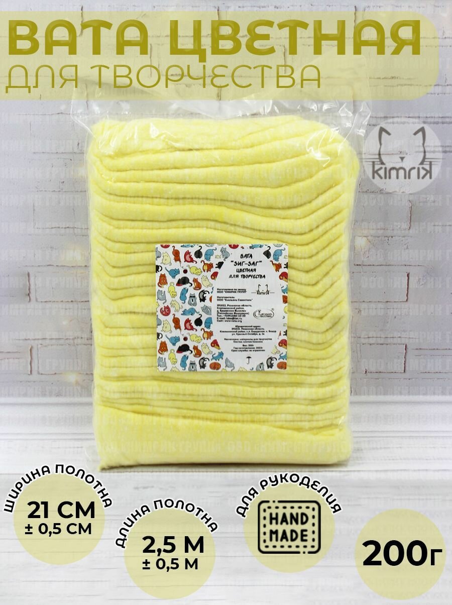 Вата цветная для творчества и поделок "ЗИГ-ЗАГ" желтая 200 г информация:
