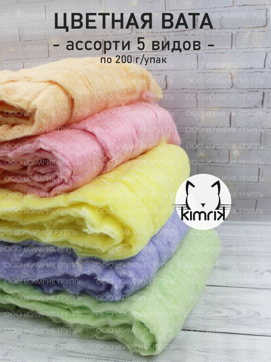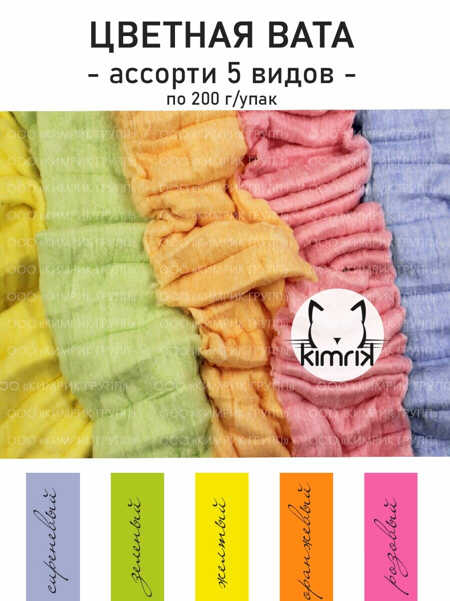 Вата цветная для творчества и поделок "ЗИГ-ЗАГ" желтая, сиреневая, розовая, зеленая, оранжевая по 200 г информация: