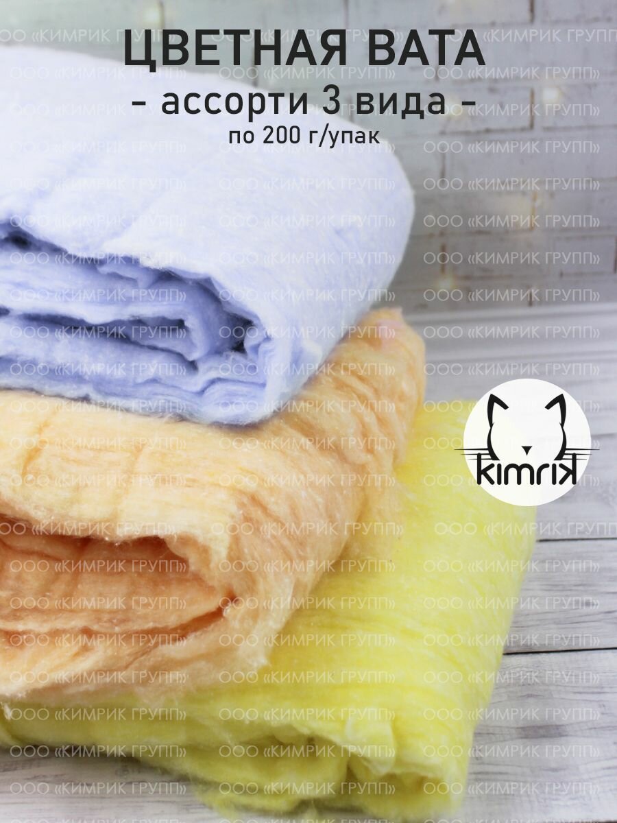 Вата цветная для творчества и поделок "ЗИГ-ЗАГ" желтая, розовая, сиреневая по 200 г 1 169 ₽