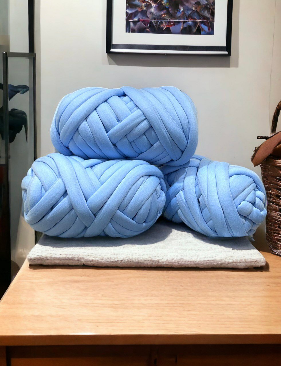 Отзывы на Толстая трубчатая пряжа с толщиной нити 2,5 см длиной 22 м голубая 500 г
