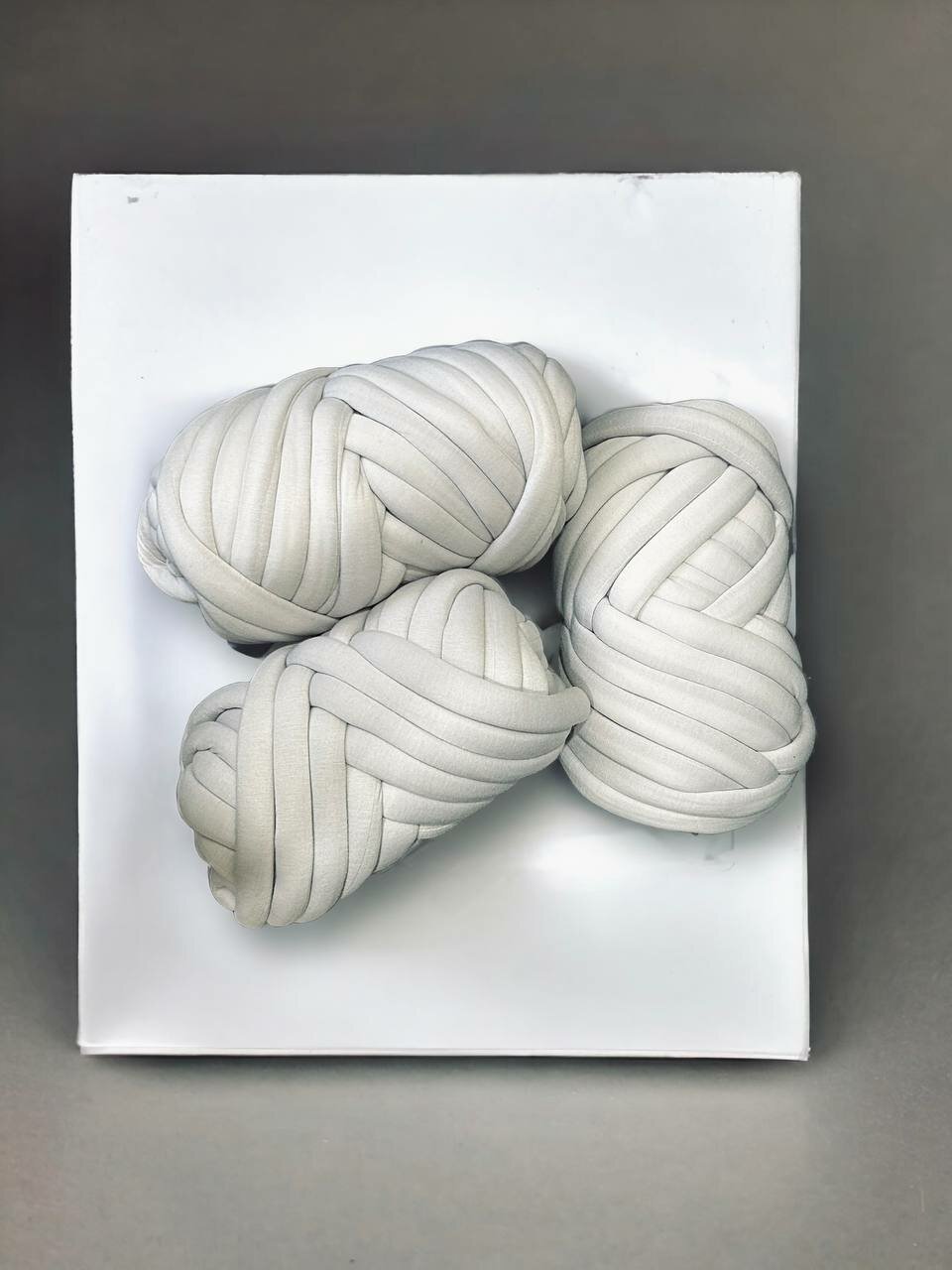 Толстая трубчатая пряжа с толщиной нити 2,5 см длиной 22 м молочно-белая 500 г 1 180 ₽