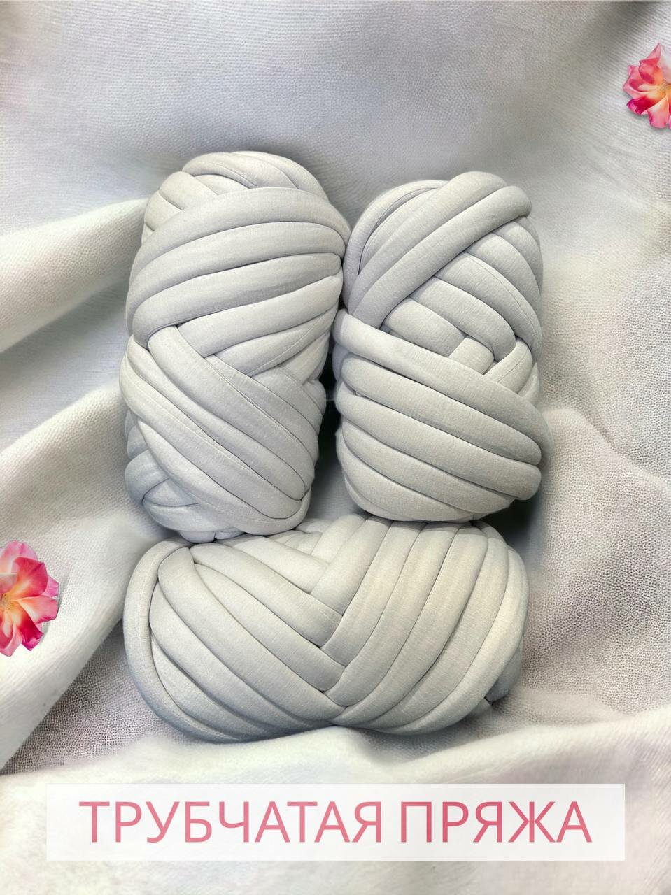 Толстая трубчатая пряжа с толщиной нити 2,5 см длиной 22 м светло-серая 500 г информация: