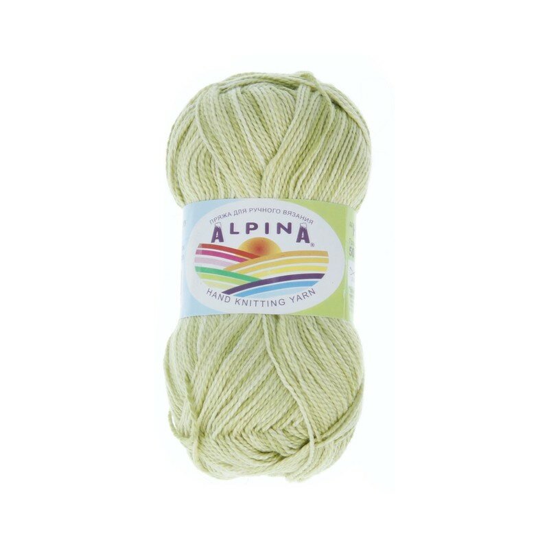 10 цен на Пряжа ALPINA "HOLLY MELANGE" 100% мерсеризованный хлопок 50 г 200 м №03 зеленый/св. зеленый