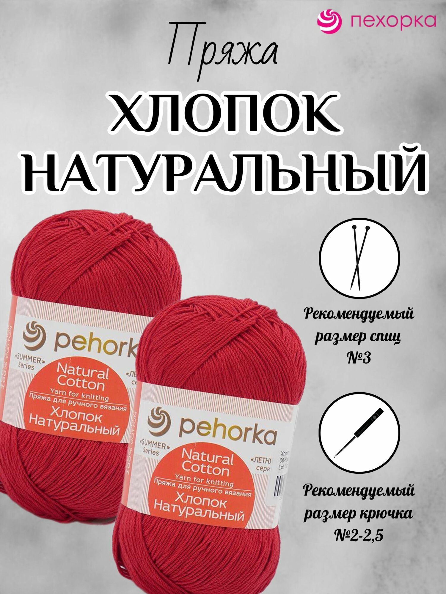 Летняя пряжа Хлопок натуральный 425м Пехорка, цвет 06 красный, 5 мотков информация: