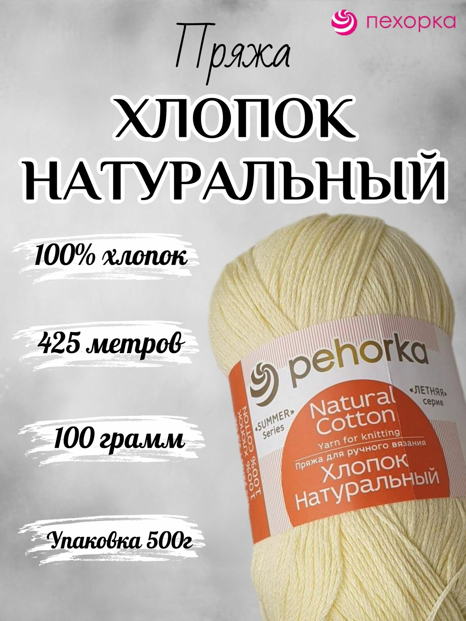 10 цен на Летняя пряжа Хлопок натуральный 425м Пехорка, цвет 53 светло-желтая, 5 мотков