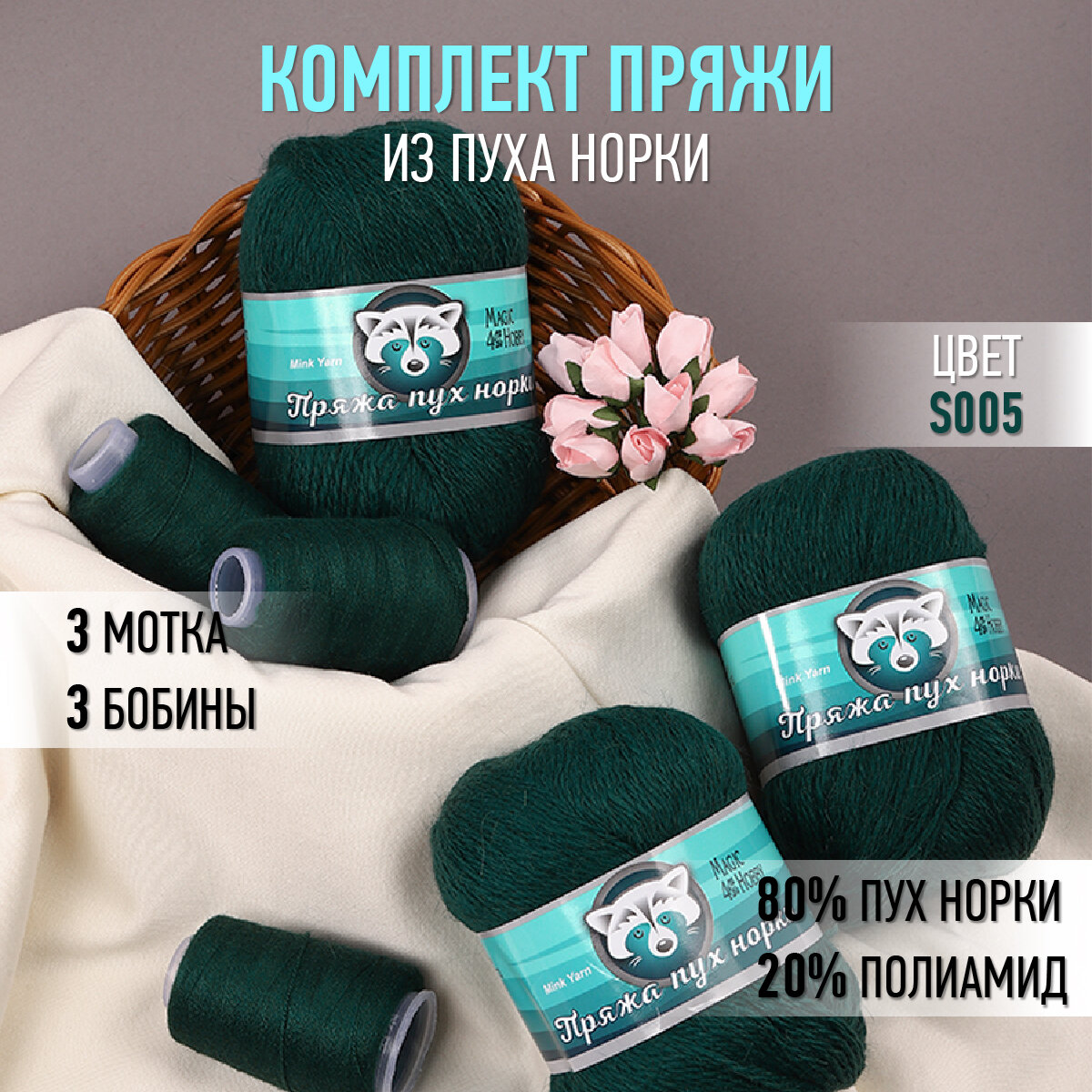 Пряжа для вязания Magic 4 Hobby Пух норки (80% пух норки, 20% полиамид) 3х50г/350м цв. S005 т. зеленый информация:
