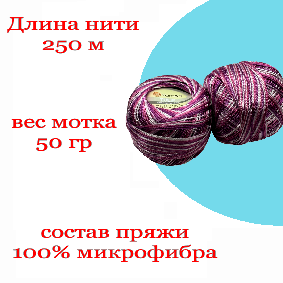 Пряжа TULIP (YarnArt), сир-лилов-бел - 461, 100% микрофибра, 6 мотков, 50 г, 250 м. 916 ₽