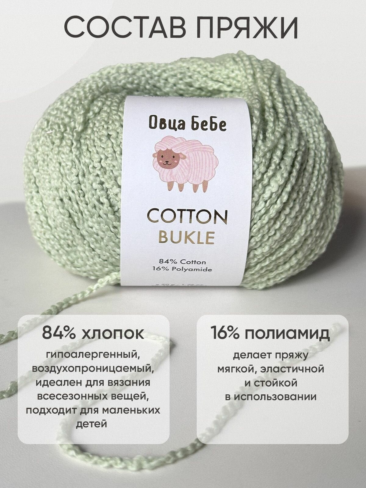 Отзывы на Пряжа Cotton Bukle для вязания буклированная, цвет зелёный дым (набор из 2шт)