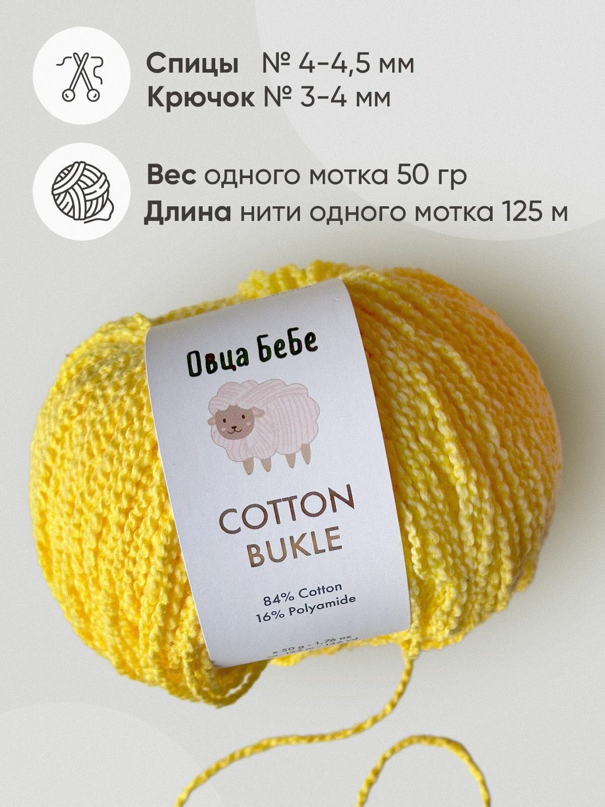 Пряжа Cotton Bukle для вязания буклированная, цвет жёлтый (набор из 5шт) 1 568 ₽
