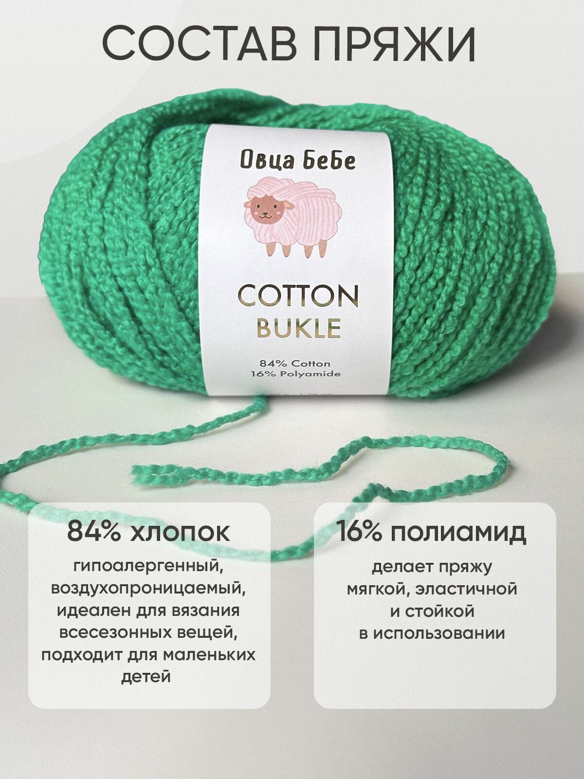 Пряжа Cotton Bukle для вязания буклированная, цвет изумрудный (набор из 2шт) информация: