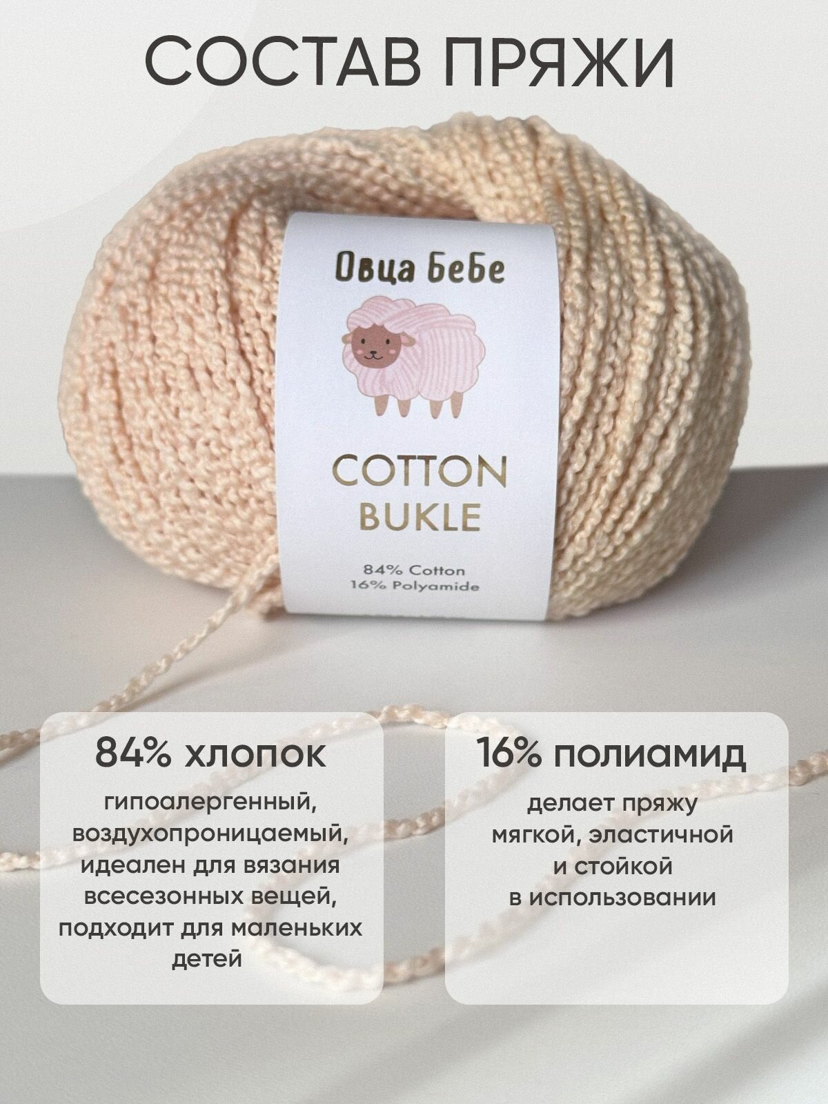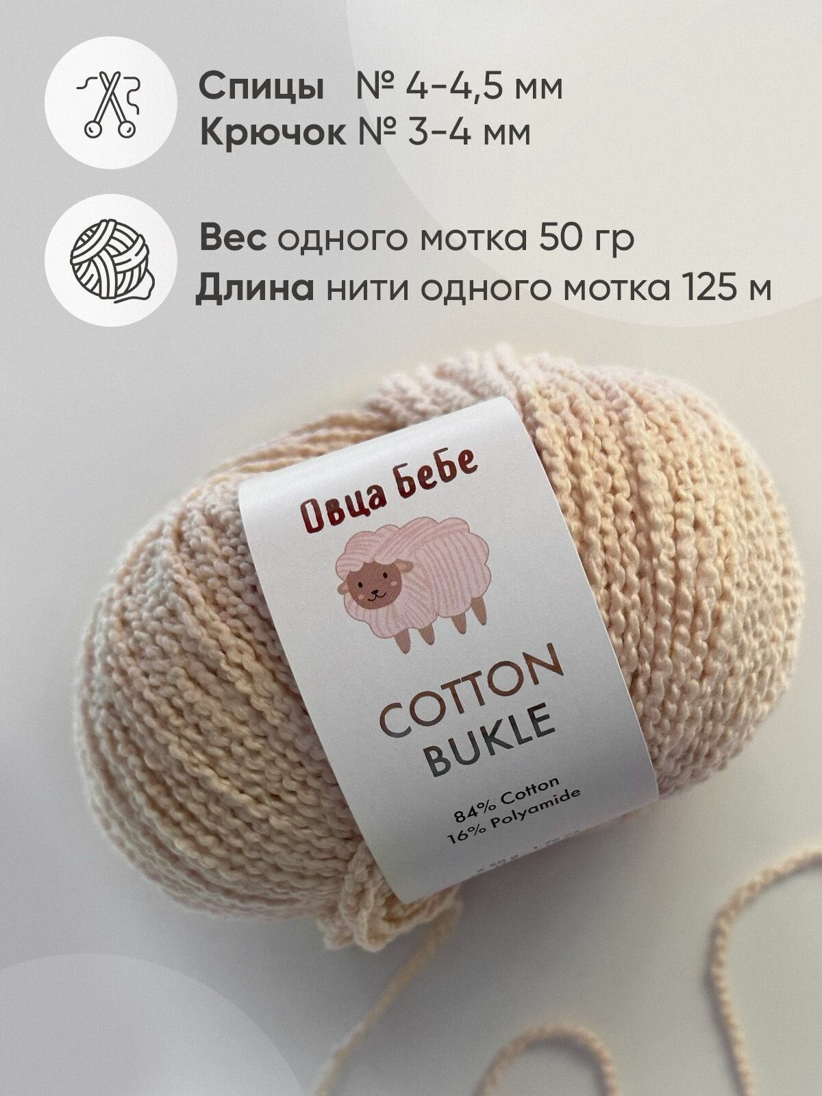 Отзывы на Пряжа Cotton Bukle для вязания буклированная, цвет топленое молоко (набор из 5шт)