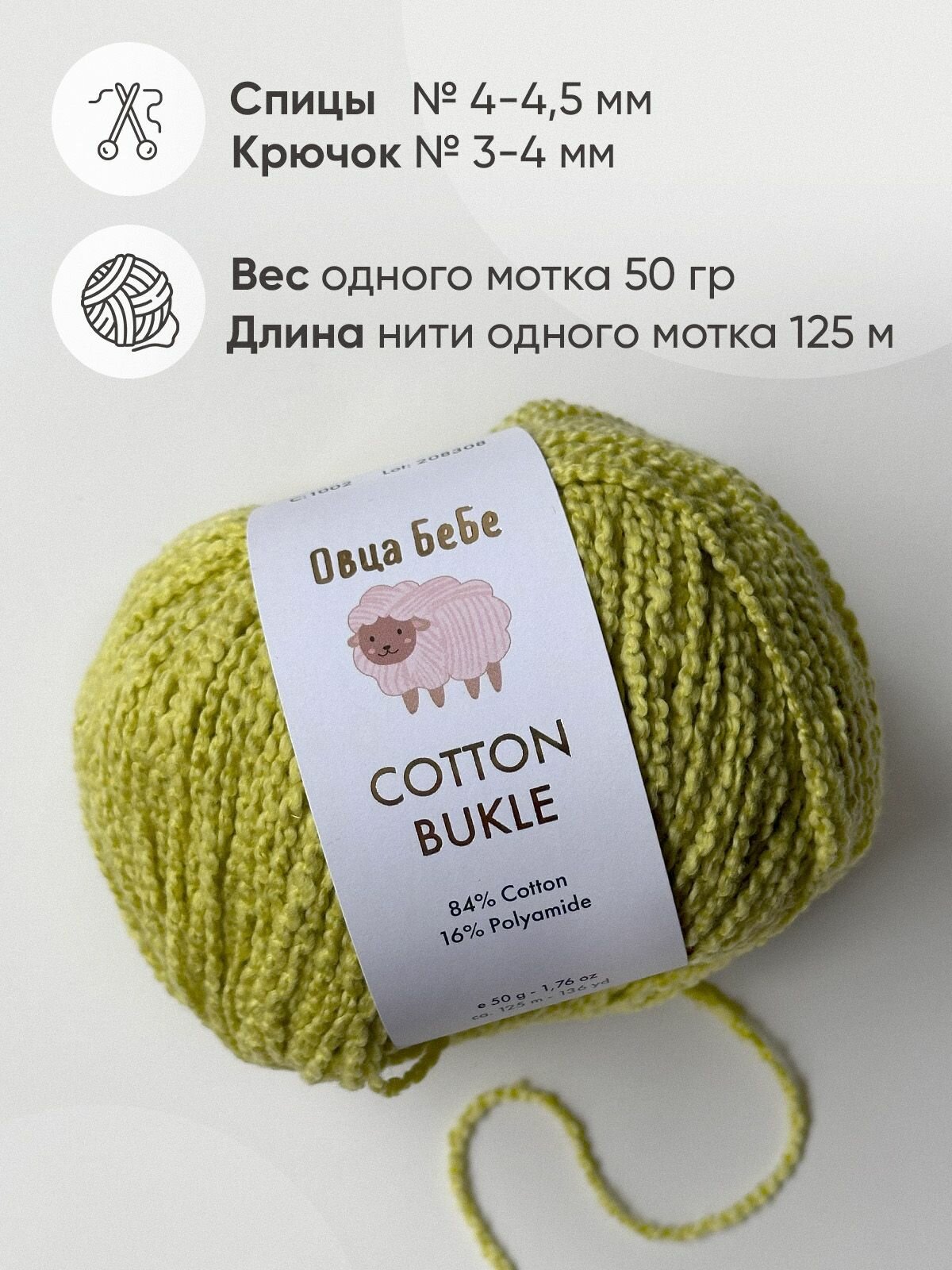 Пряжа Cotton Bukle для вязания буклированная, цвет травяной (набор из 5шт) информация: