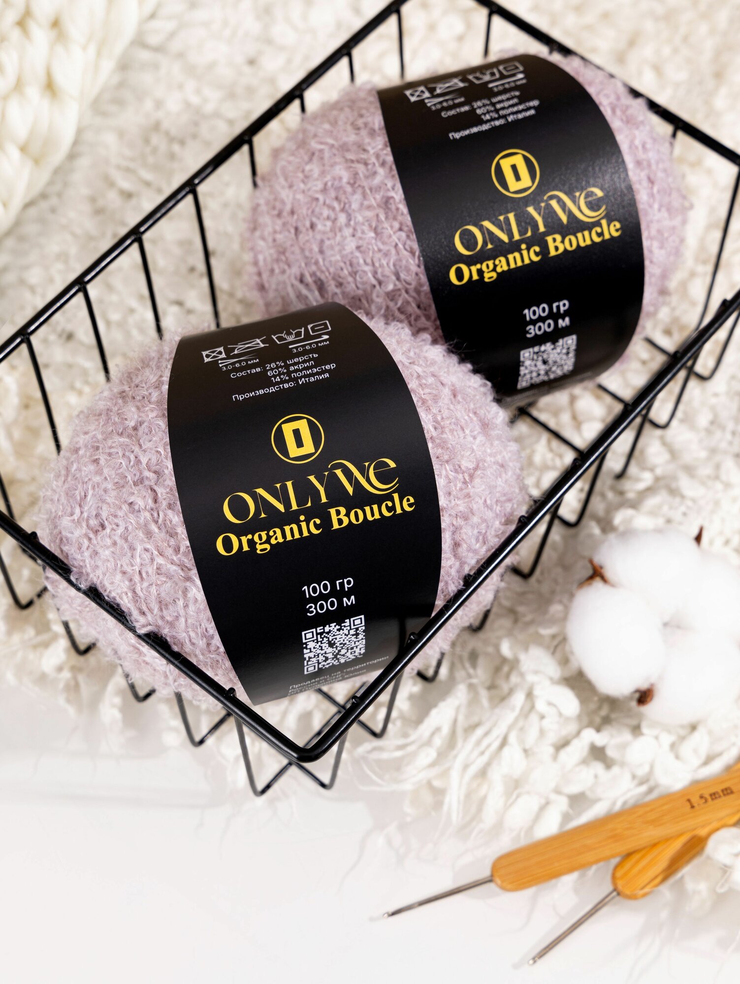 Пряжа вязания Букле OnlyWe Organic boucle, шерсть и акрил, 200 грамм, 700 метров. 846 ₽
