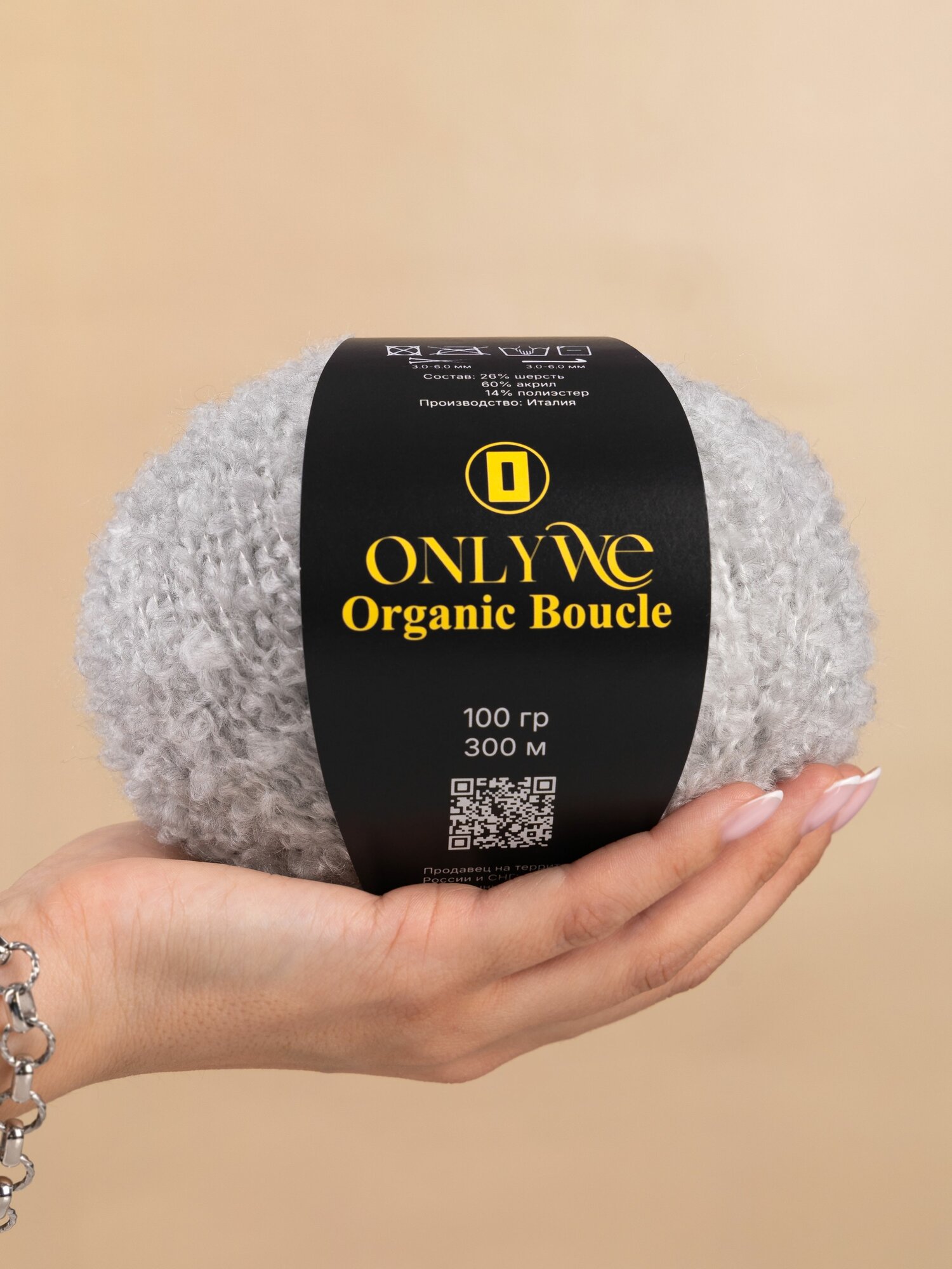 Пряжа вязания Букле OnlyWe Organic boucle, шерсть и акрил, 200 грамм, 700 метров. 846 ₽