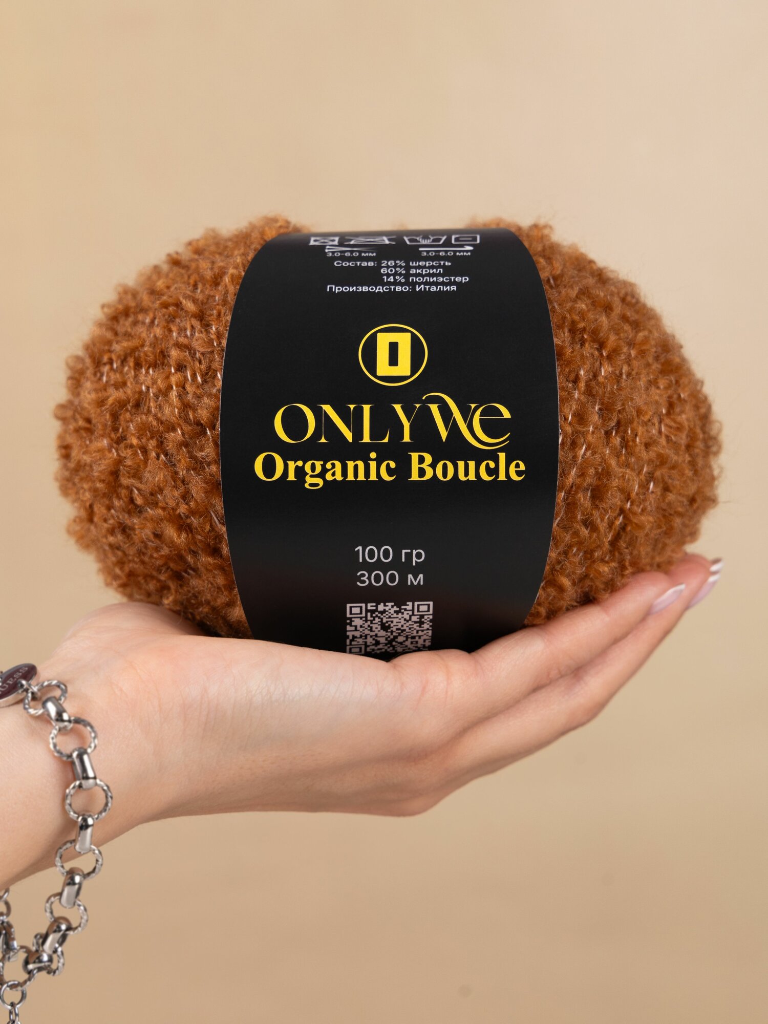 Пряжа вязания Букле OnlyWe Organic boucle, шерсть и акрил, 200 грамм, 700 метров. 846 ₽