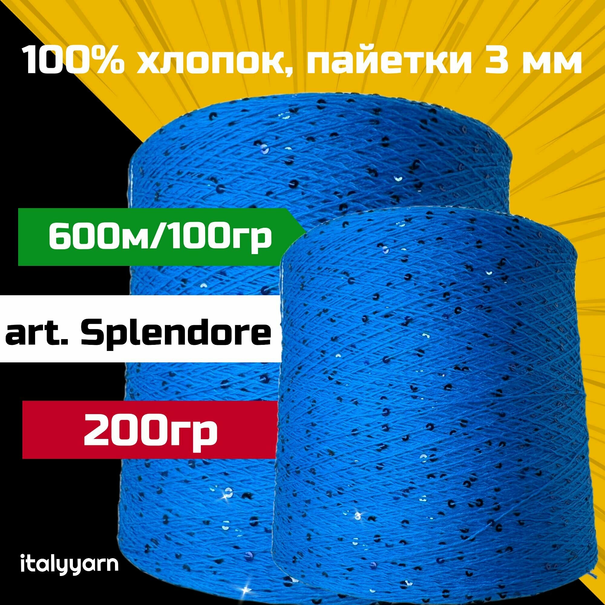 SPLENDORE; пайетки 3мм на нити из 100% хлопка; 600м/100гр; вес: 200гр; цвет: ярко синий; italyyarn информация: