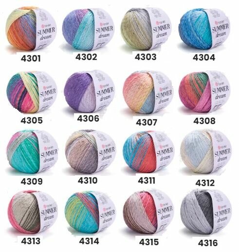 10 цен на Летняя пряжа для вязания Summer Dream от YarnArt, цвет 4302, моток 100г, 350м, 4 мотка