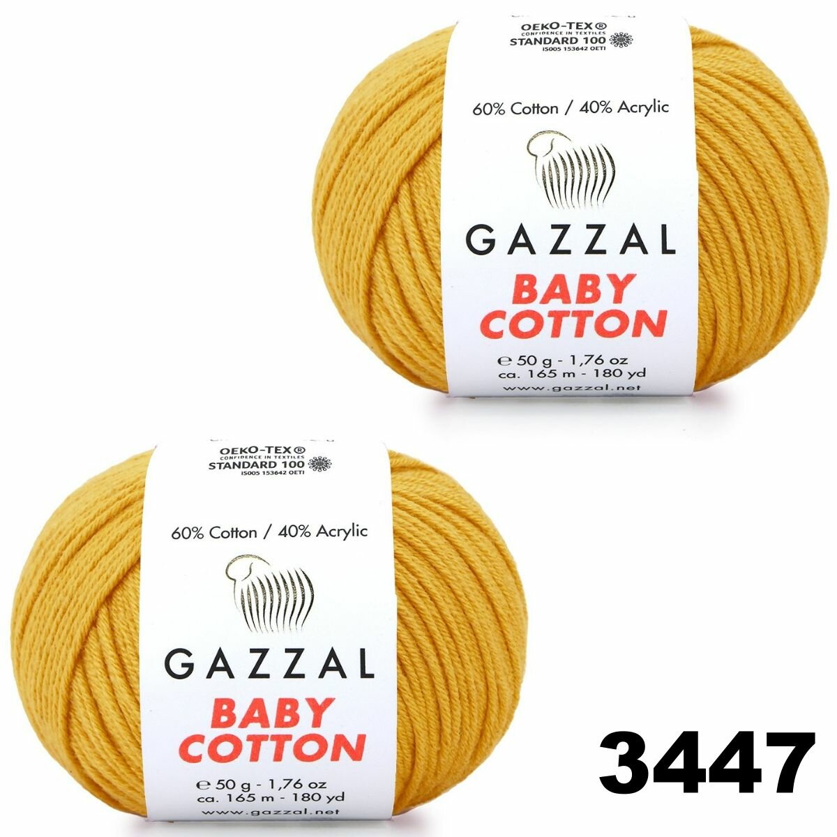Пряжа для вязания GAZZAL BABY COTTON (Газзал Бейби Коттон) / цвет 3447 - Шафран (партия 206549) / 2шт / 165м/50г, хлопок 60%, акрил 40% информация: