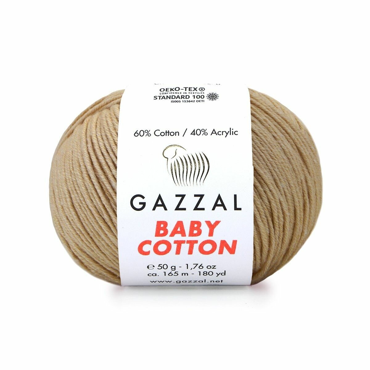 Пряжа для вязания GAZZAL BABY COTTON (Газзал Бейби Коттон) / цвет 3448 - Миндаль (партия 205611) / 2шт / 165м/50г, хлопок 60%, акрил 40% 558 ₽