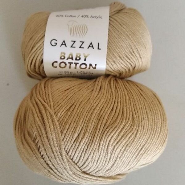 Пряжа для вязания GAZZAL BABY COTTON (Газзал Бейби Коттон) / цвет 3424 - Песок (партия 240119) / 2шт / 165м/50г, хлопок 60%, акрил 40% информация: