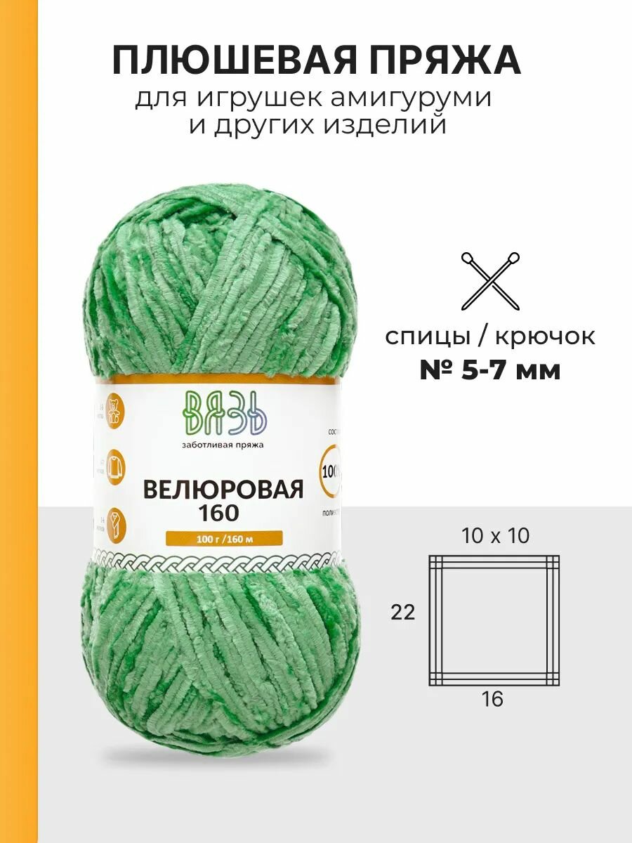 Пряжа для вязания Вязь 'Велюровая' 100г, 160м (100% полиэстер) (15 зеленый), 3 мотка 636 ₽