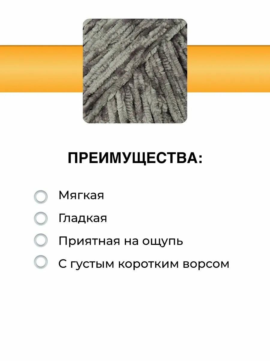 Пряжа для вязания Вязь 'Велюровая' 100г, 160м (100% полиэстер) (09 темно-серый), 3 мотка информация: