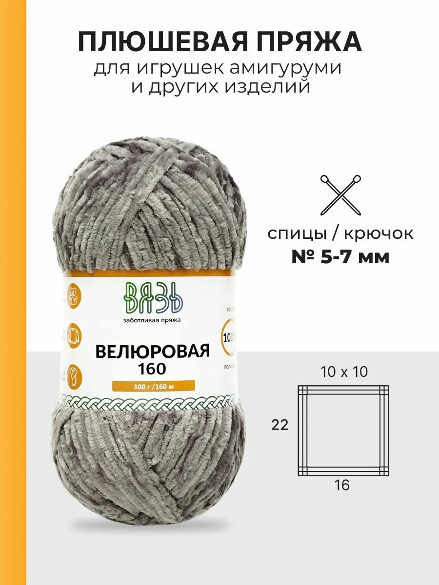 10 цен на Пряжа для вязания Вязь 'Велюровая' 100г, 160м (100% полиэстер) (09 темно-серый), 3 мотка