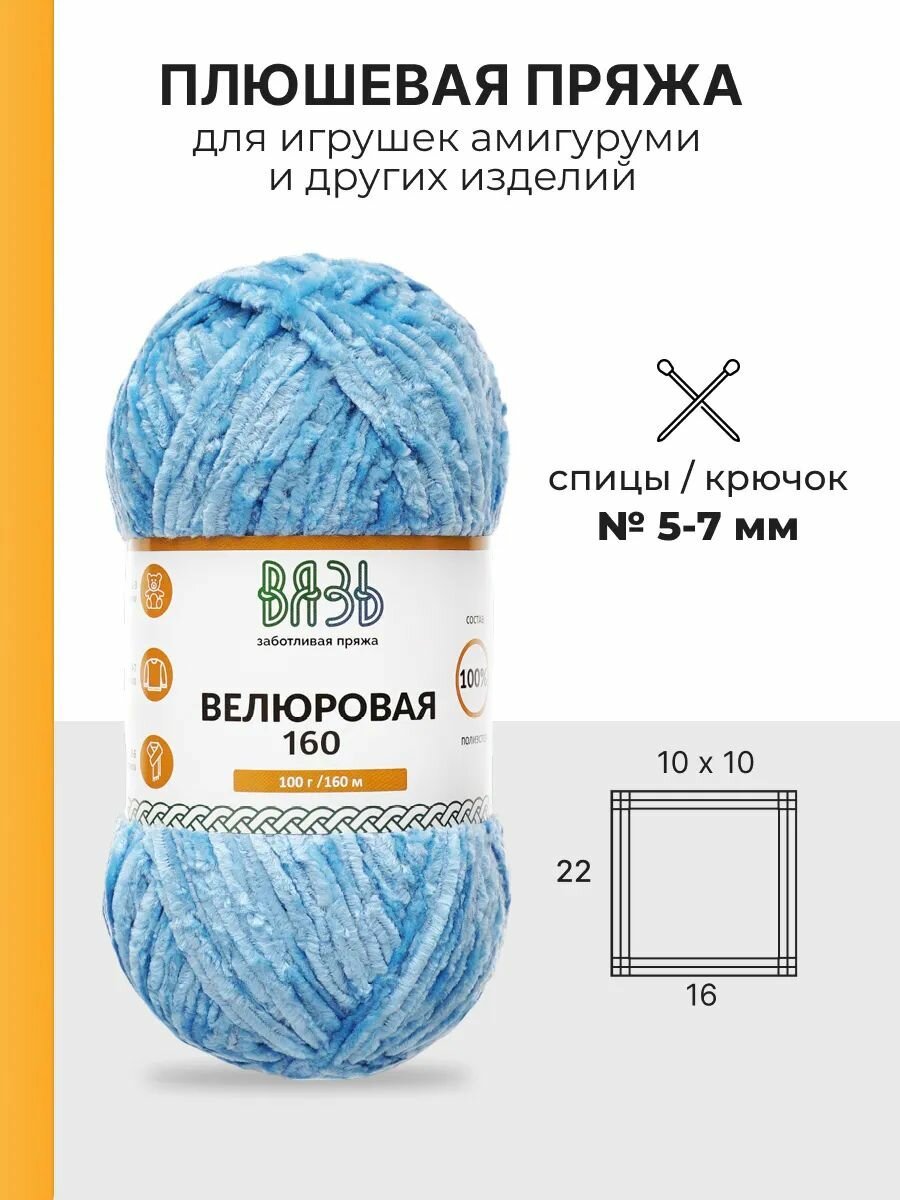 Пряжа для вязания Вязь 'Велюровая' 100г, 160м (100% полиэстер) (10 голубой), 3 мотка информация:
