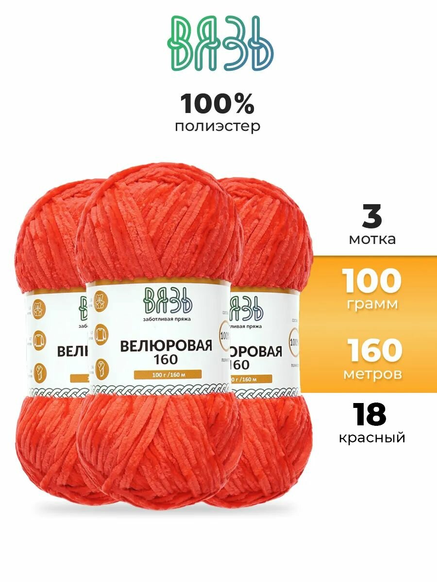 Пряжа для вязания Вязь 'Велюровая' 100г, 160м (100% полиэстер) (18 красный), 3 мотка информация: