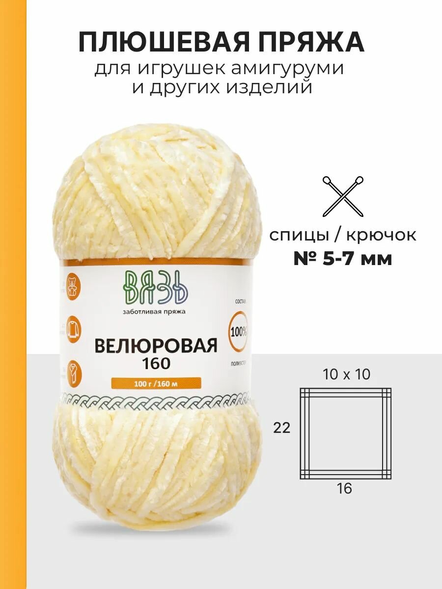 Пряжа для вязания Вязь 'Велюровая' 100г, 160м (100% полиэстер) (04 светло-бежевый), 3 мотка информация: