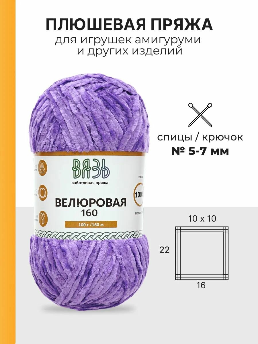 Пряжа для вязания Вязь 'Велюровая' 100г, 160м (100% полиэстер) (17 сиреневый), 3 мотка информация: