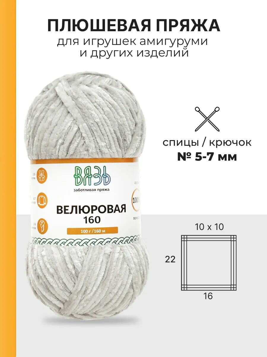 10 цен на Пряжа для вязания Вязь 'Велюровая' 100г, 160м (100% полиэстер) (08 светло-серый), 3 мотка