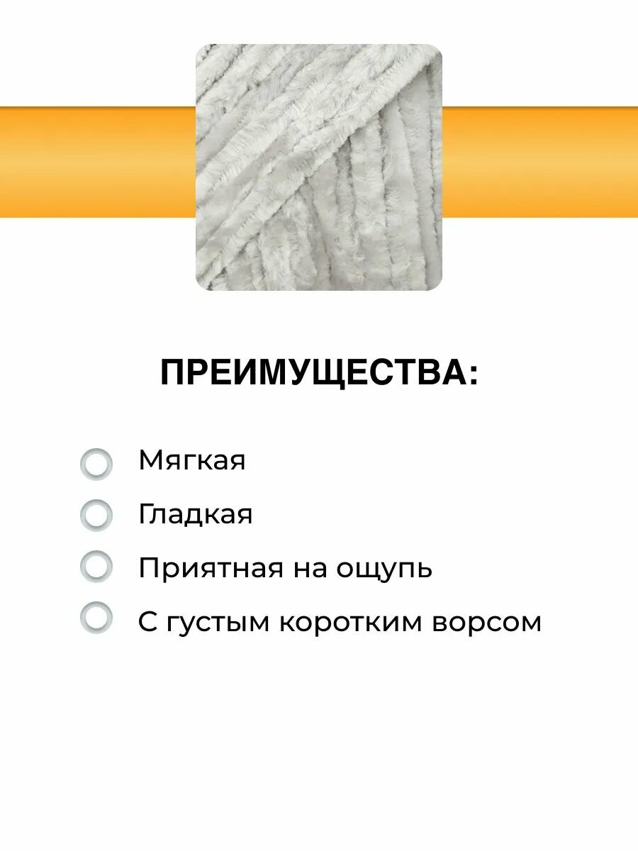 Пряжа для вязания Вязь 'Велюровая' 100г, 160м (100% полиэстер) (08 светло-серый), 3 мотка информация: