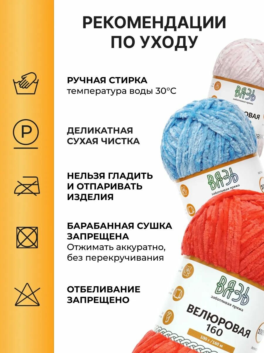Пряжа для вязания Вязь 'Велюровая' 100г, 160м (100% полиэстер) (13 оранжевый), 3 мотка 624 ₽