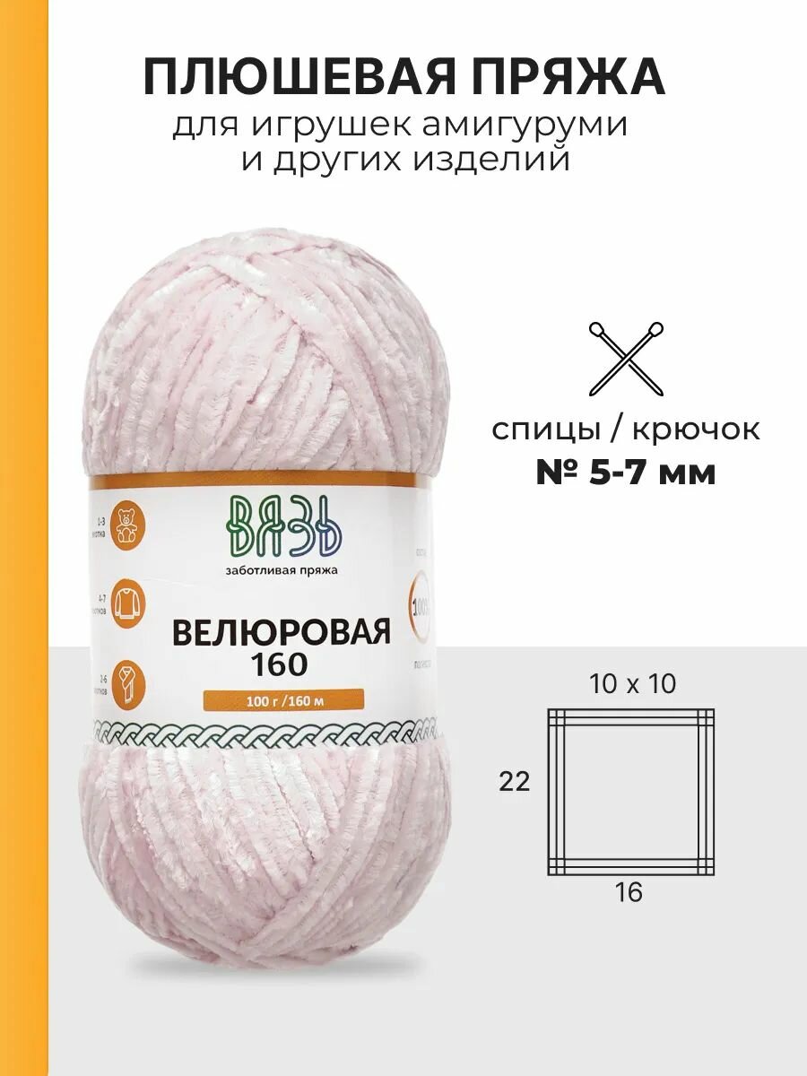 Пряжа для вязания Вязь 'Велюровая' 100г, 160м (100% полиэстер) (04 светло-бежевый), 3 мотка 621 ₽