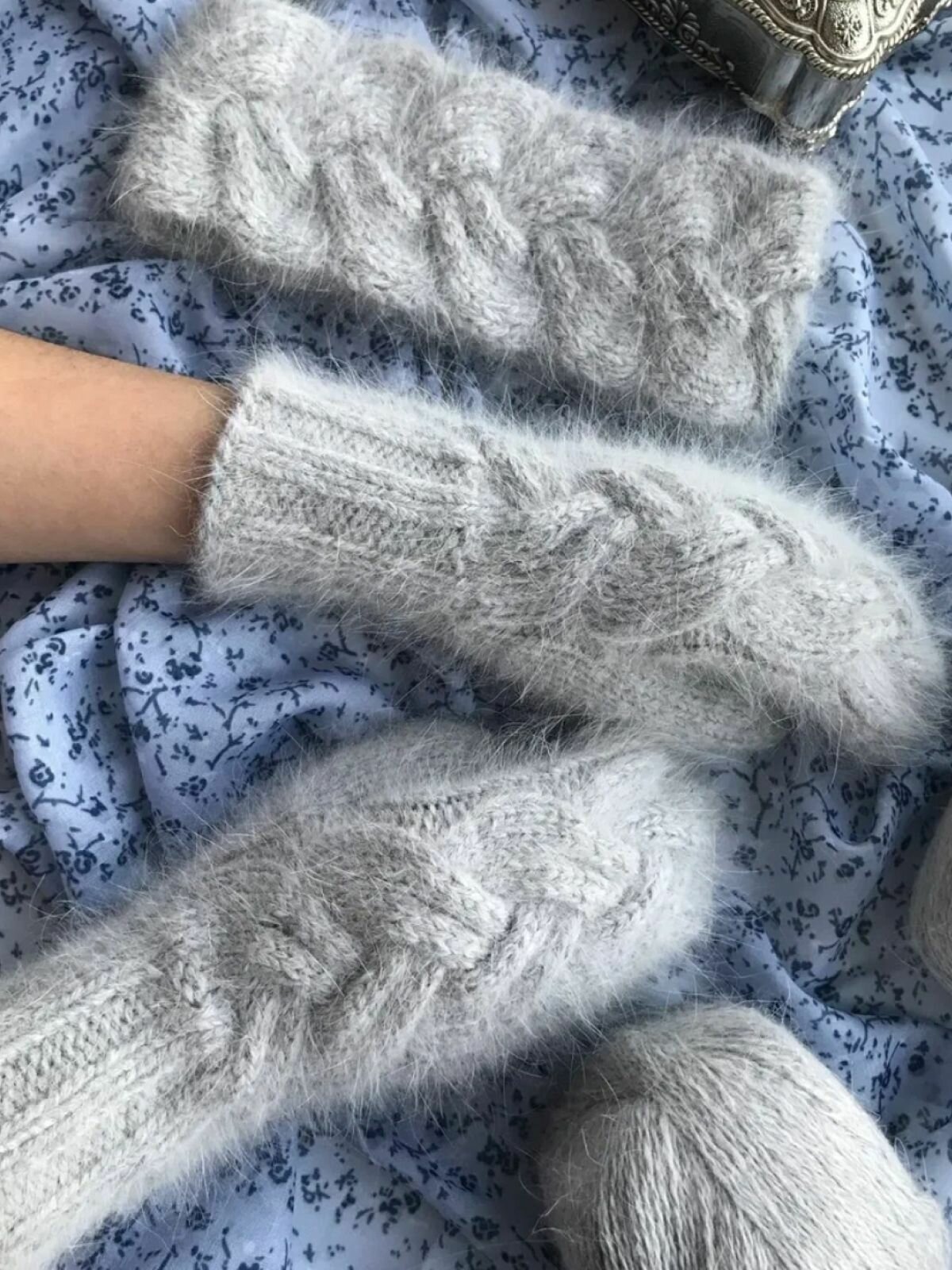Пряжа Пух норки - 5 мотков 50гр/350м + 5 мотков добавочной нити, цвет 802 светло-серый меланж, синяя этикетка 1 553 ₽